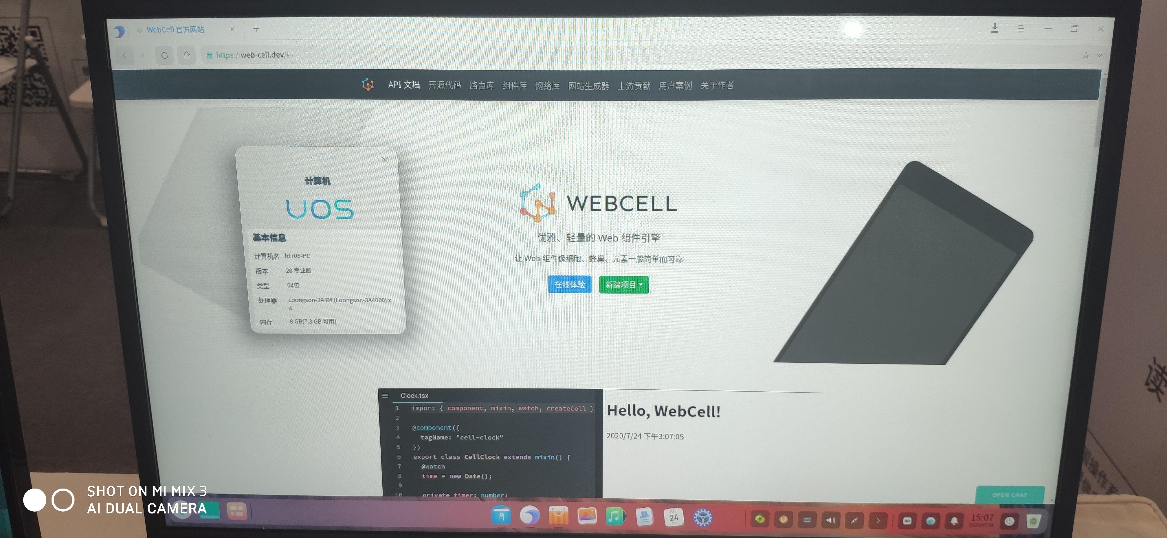 - 笔者穿着汉服大全套现场试用 UOS + 龙芯